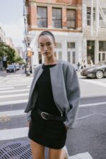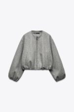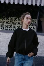 ژاکت به سبک بمب افکن با یقه گرد و آستین بلند.