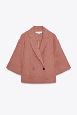 بلِیزر French Sleeve Double-Breasted Blazer از Zara با طراحی جذاب و بهروز، ترکیبی از ظرافت کلاسیک و مد روز است. این کت زنانه دارای یقهی برگردان و آستین فرانسوی گسترده تا زیر آرنج است که با تهگردان (turn-up) جلوهای زیبا و ساختاریافته ایجاد میکند. بسته شدن جلوی کت بهصورت دو ردیفه با دکمههایی بزرگ، نشاندهندهی سبک رسمی و استایلیش آن است. جیبهای گود جلو (front welt pockets) علاوه بر ظاهر کاربردی، ظرافتی روزمره به استایل میافزایند. پارچهی این بلِیزر از ۹۴٪ لیوسل و ۶٪ پلیآمید تشکیل شده و مانند لایهی داخلی آن، نرمی و راحتی ویژهای فراهم میکند.این ترکیب پارچهای نهتنها حس لطافت و کیفیت را القا میکند، بلکه امکان استفادهی چندفصلی را نیز میدهد. طراحی توکار و جزئیات ظریف این بلِیزر آن را گزینهای ممتاز برای ظاهرهای کاری، رسمی یا استایلهای شهری شیک تبدیل کرده است.