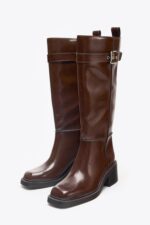 بوت زنانه Contrast Topstitch Knee-High از Zara با طراحی منحصربهفرد و جزئیات برجسته، انتخابی عالی برای استایلهای مدرن و شیک به شمار میروند. رنگ «Burgundy Red» جذاب به همراه دوختهای متضاد (contrast topstitching) بر روی قسمت بالایی، ظاهری زیبا و چشمنواز ایجاد کرده است. ساق بلند این بوت، همراه با جزئیات تسمهای در کناره و بند کششی در پشت برای پوشیدن آسان، راحتی و ظرافت را بهطور همزمان به ارمغان میآورد پاشنه بلوک متوسط به ارتفاع حدود 6 سانتیمتر (2.4 اینچ) و نوک مربعشکل، ترکیبی از راحتی و ظرافت را فراهم میکنند، در حالیکه مواد ساخت شامل روکش ۱۰۰٪ پلییورتان، ل liningنیگ ۹۵٪ پلیاستر و ۵٪ پلییورتان، زیرهی SBS و کفی ۱۰۰٪ پلیاستر هستند