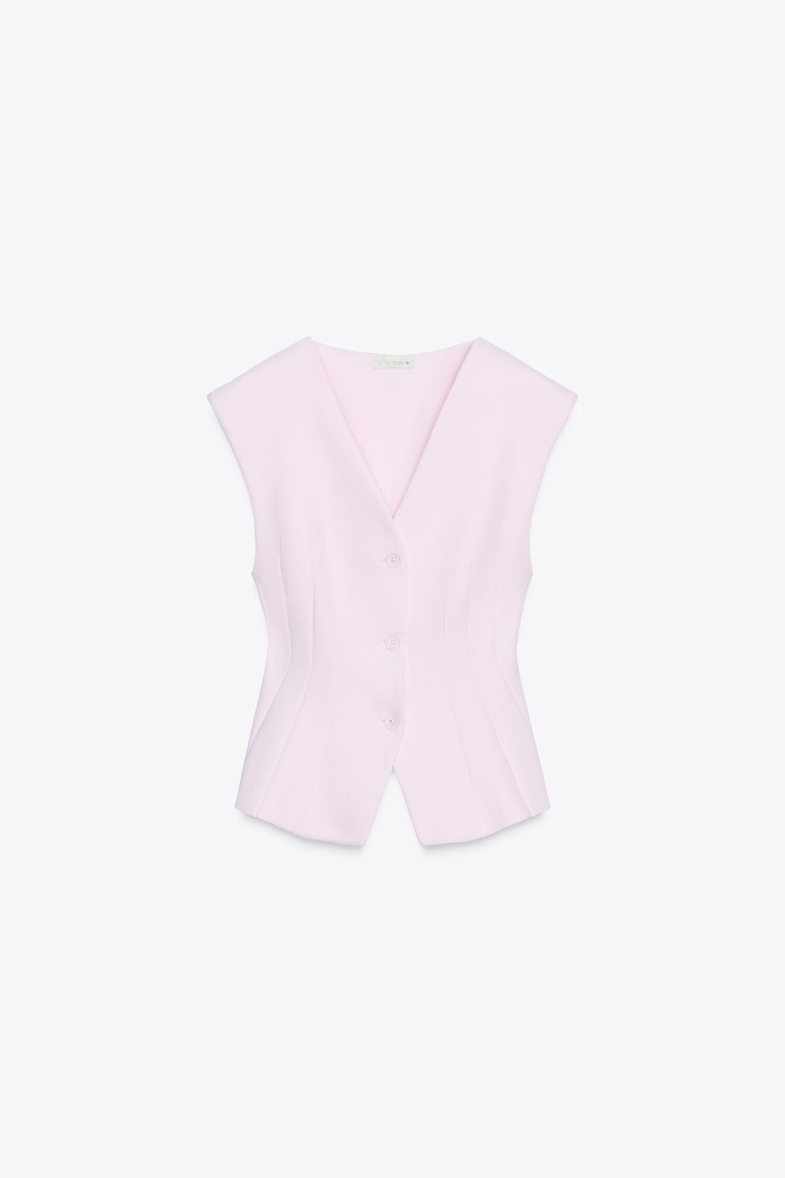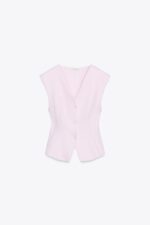 تاپ بدون آستین “Interlock” از Zara، طراحیشده از پارچهٔ انعطافپذیر و نرم با بافتی فشرده، مات و لطیف است که حس راحتی و جلوهای شکیل را در کنار هم بههمراه دارد. یقه V و دوشهای پددار این مدل، حالتی ساختاریافته و مدرن به پوشش شما میبخشند، در حالی که قسمت کمر کاملاً متناسب و جلوهای باریک ایجاد میکند. دکمههای جلویی امکان بستن آسان و تطبیقپذیری استایل را فراهم میسازند. ترکیب پارچهای با ۷۵٪ پنبه، ۱۷٪ پلیاستر و ۸٪ الاستین در هر دو لایه بیرونی و زیرین، تضمینی برای تنفسپذیری بالا و انعطاف مطلوب است. این تاپ با رنگهای متنوع همچون کرم (Ecru)، صورتی و مشکی عرضه میشود و مناسب تمام فصول است. چه برای استایل روزمره و چه برای محیطهای رسمی، طراحی مدرن، کیفیت ساخت و راحتی، این محصول را انتخابی جذاب برای کیف لباس شما میسازد… کلمات کلیدی: تاپ بدون آستین، پارچهٔ interlock، Zara، یقه V، پد شانه، فیت کمر.