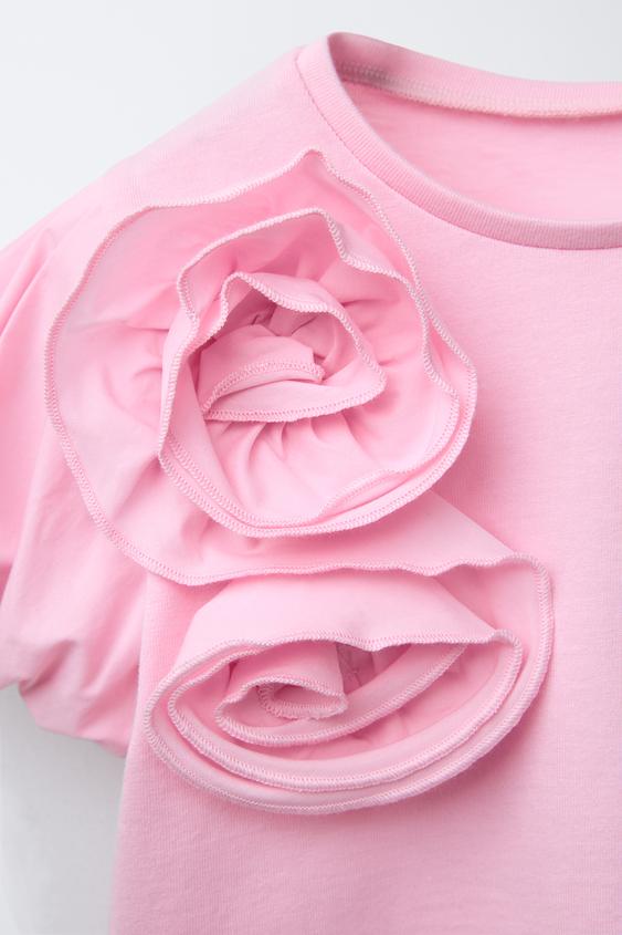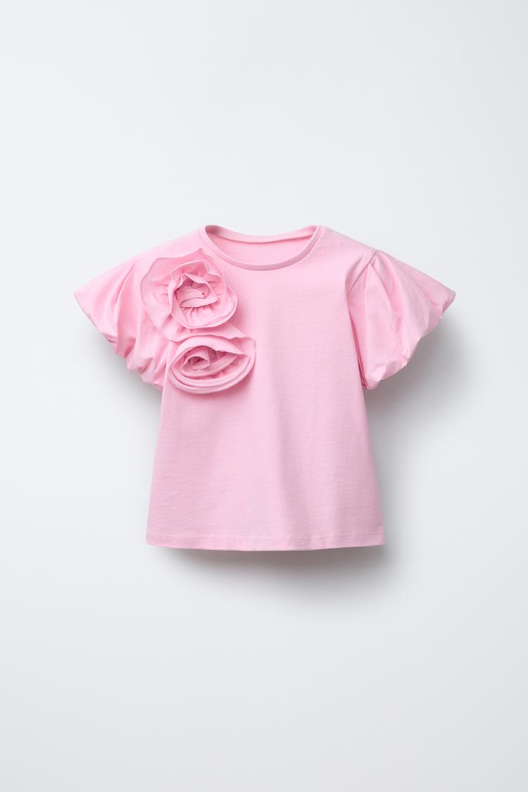 تیشرت دخترانه زارا T-SHIRT WITH CONTRAST FLOWER