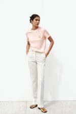تیشرت نخی زنانه با یقه گرد و جزئیات فلزی – از مجموعه ZARA