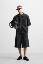 شلوارک مردانه زارا PLEATED WIDE-LEG BERMUDA SHORTS