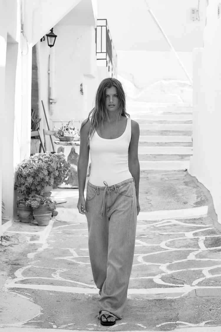 شلوار جین زنانه زارا DRAWSTRING LOOSE-FITTING DENIM TROUSERS