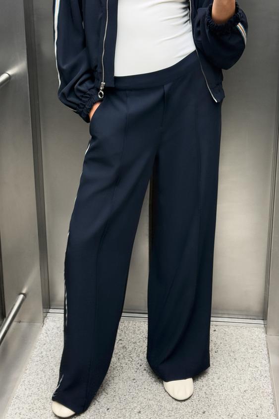 شلوار زنانه زارا WIDE-LEG TROUSERS WITH SIDE STRIPE