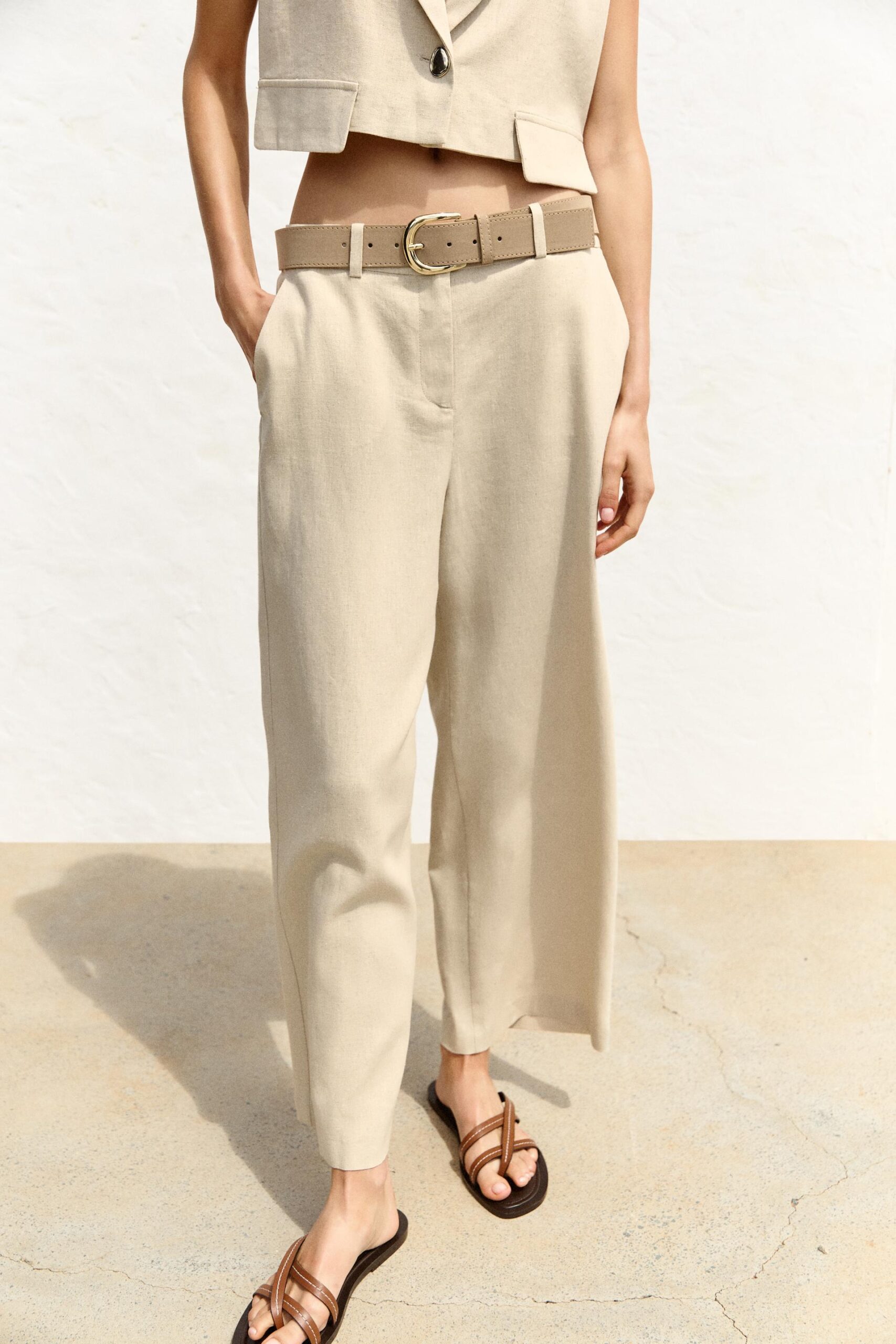 شلوار لینن زنانه LINEN BLEND CULOTTES WITH BELT زارا