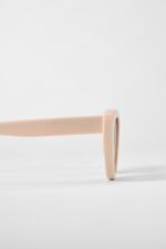 با فرم کلاسیک «کتآی» و طراحی مینیمال، یک انتخاب منحصربهفرد برای خانمهایی است که به ترکیبی از استایل لوکس و روزمره علاقهمندند. فریم ساخته شده از ۷۹٪ سلولز دیاستات و ۲۱٪ مس، حسی طبیعی و سبک را بر چهره ایجاد میکند. لنزها از جنس الیل دیگلیکول کربنات بوده و ۱۰۰٪ محافظت در برابر اشعهی UV فراهم میکنند (رده ۲). این مدل بخشی از همکاری ویژهی Zara x Kate Moss و Bobby Gillespie است، که طراحی آن را به نسخهای محدود و خاص تبدیل کرده است. رنگ کرم آن بهخوبی با لباسهای روشن یا ترکیبهای زمستانی مطابقت دارد.