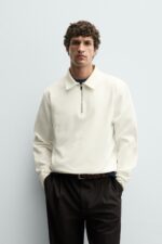 پولوشرت مردانه Interlock Quarter-Zip Polo Shirt زارا تلفیقی از استایل مدرن و راحتی بینظیر است. این تیشرت با یقهدار زیپدار و دوخت حرفهای از پارچه اینترلاک، ظاهری شیک و در عین حال اسپرت دارد. ترکیب پارچه پنبه و پلیاستر باعث نرمی، دوام و تهویه مناسب آن میشود.