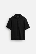 با ترکیب پارچهای ۸۵٪ پنبه و ۱۵٪ پلیاستر، ظاهری مدرن و راحت ارائه میدهد. طراحی یقه کمپ، آستین کوتاه، دکمهدار در جلو و تهمانده با شکافهای جانبی، این پیراهن را به گزینهای مناسب برای استایلهای روزمره تا نیمهرسمی تبدیل کرده است. با رنگ مشکی و فیت آزاد (Relaxed Fit)، به آسانی با شلوار جین یا کتان ترکیب میشود. پوششی مناسب برای فصلهای معتدل است که ضمن راحتی، جلوهای شیک و بافتدار دارد. انتخابی هوشمند برای کسانی که به ترکیب کیفیت، بافت ویژه و سادگی علاقهمندند.