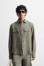 پیراهن لینن مردانه زارا 100% LINEN OVERSHIRT