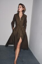 با طراحی یقهی کتشو و آستینهای بلند، انتخابی ایدهآل برای استایلهای روزمرهی شیک و راحت است. این مدل در رنگهای کلاسیک مانند سرمهای و خاکی تیره ارائه میشود که به سادگی با انواع اکسسوری و کفش ست میشود.