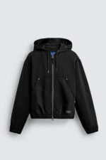 یک ژاکت سبک و مدرن با طراحی کلاهدار و جلو زیپی است. این مدل با فیت آزاد (relaxed fit) و پارچهی پنبهای با افکت شستوشو طراحی شده است که ظاهر جینمانند و جلوهای طبیعی دارد. یقه با کلاه قابل تنظیم، آستینهای بلند و بندهای کشی در لبه و کمر، راحتی و عملکرد را با هم ترکیب میکند. این ژاکت دارای جیبهای جلو از نوع کانگورو برای حمل روزمره و فضای ذخیرهسازی است.