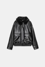 کاپشن چرم زنانه JACKET WITH DETACHABLE FAUX FUR COLLAR زارا
